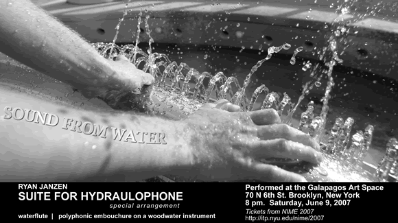In 2007, Janzen premiered the world's first orchestral composition for hydraulophone. Suite for Hydraulophone