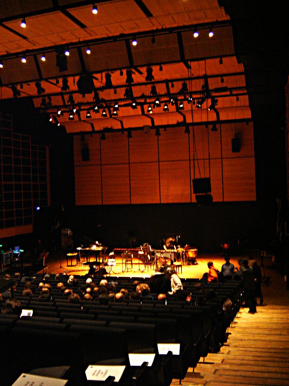 The participants are seated in a music performance hall. Musicians are waiting, with sheet music, ready to play. The lights fade to black, enveloping all participants in darkness.